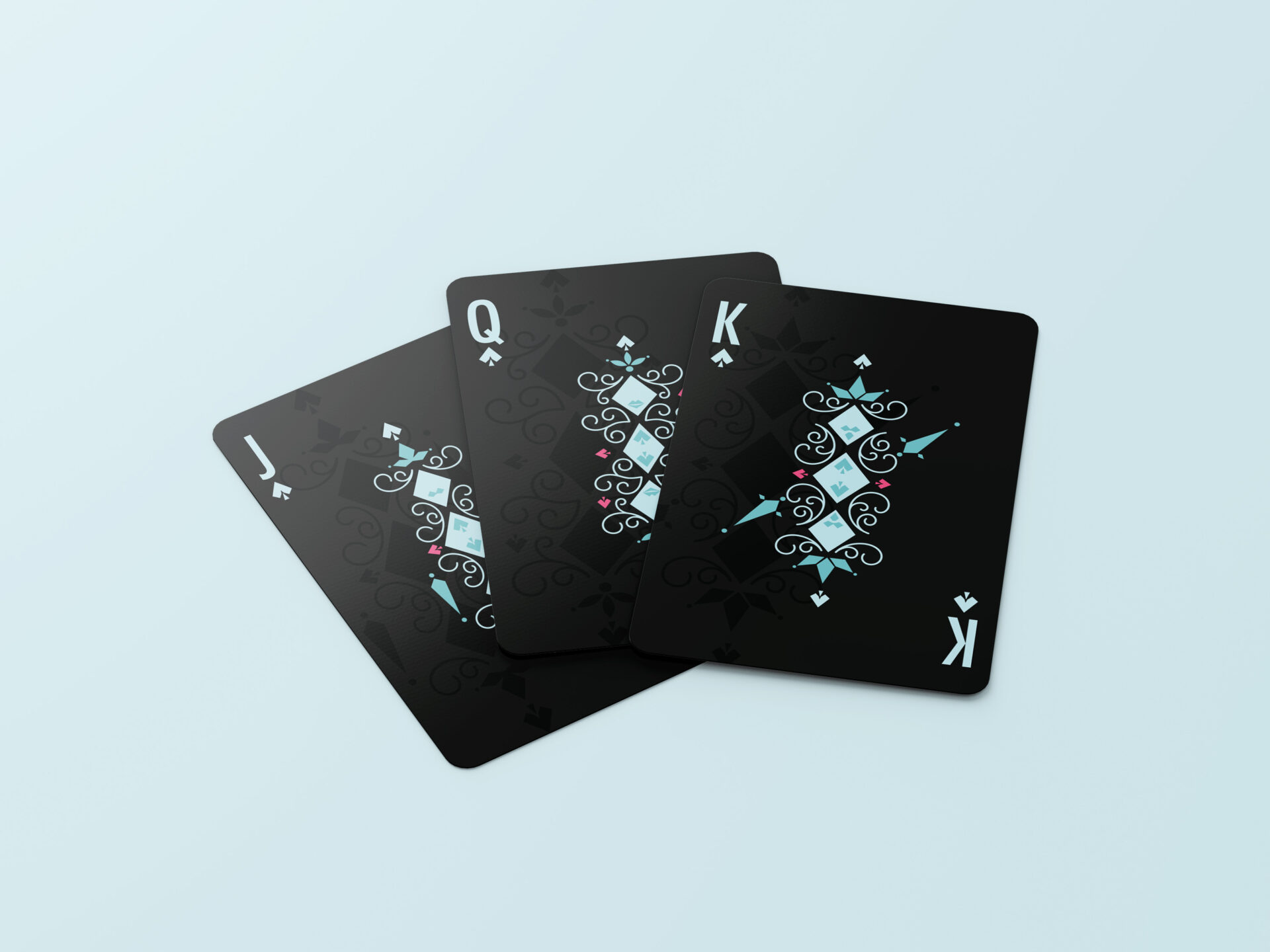 My vision was to create a deck that felt ornamental and artistic, while still remaining functional as a playing card set. I wanted the abstract curves to mimic the shapes found in vintage chandeliers soft, looping, and symmetrical while the colour palette of pinks and blues brought a more contemporary, gentle feel. The goal was to merge nostalgia with modern design, creating something elegant yet playful.